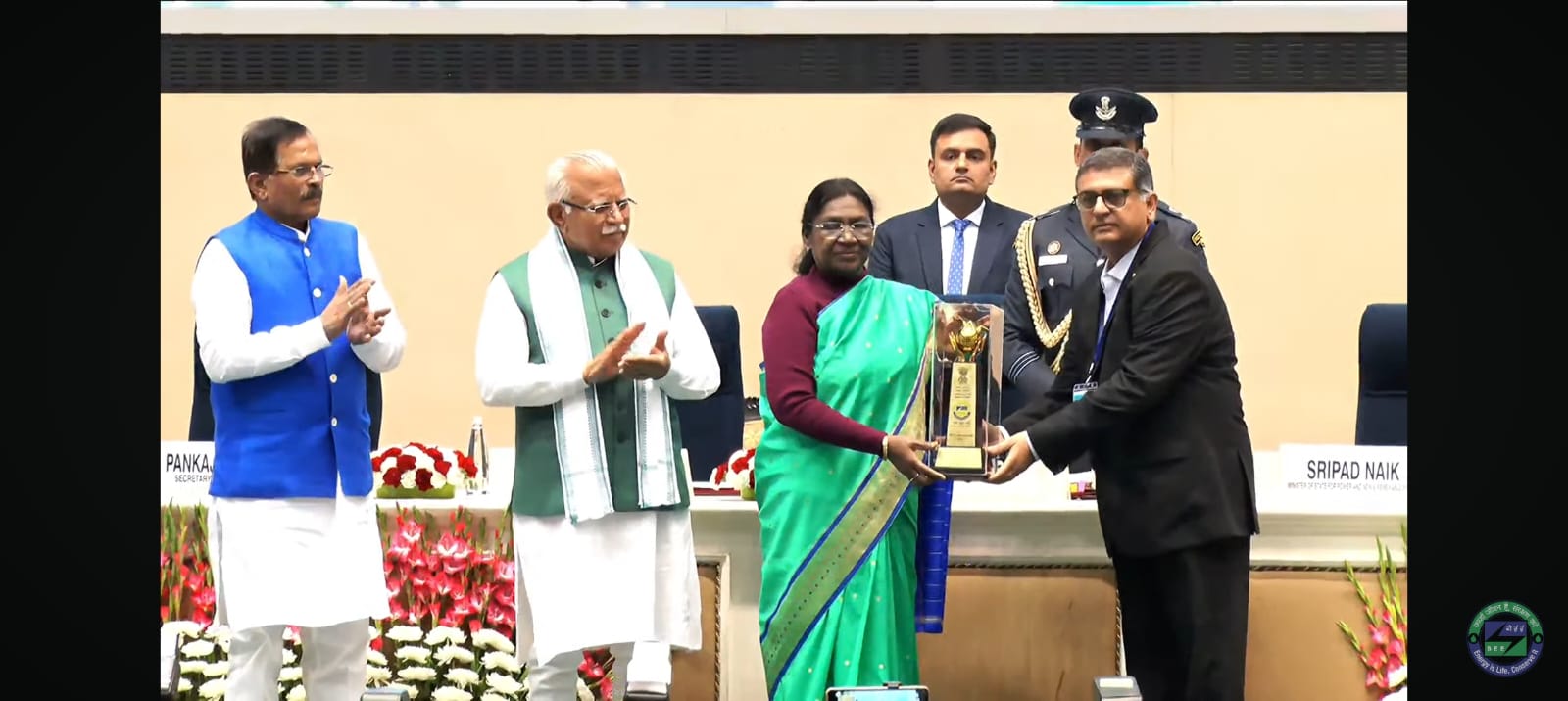 • ‘ઊર્જા કાર્યક્ષમતા ઇનોવેશન’ – ઇન્ડસ્ટ્રી કેટેગરીમાં ‘બેસ્ટ ઇનોવેટર એવોર્ડ’ માનનીય રાષ્ટ્રપતિ શ્રીમતી દ્રૌપદી મુર્મૂ અને માનનીય વીજ મંત્રી શ્રી મનોહર લાલ ખટ્ટર દ્વારા એનાયત કરાયો