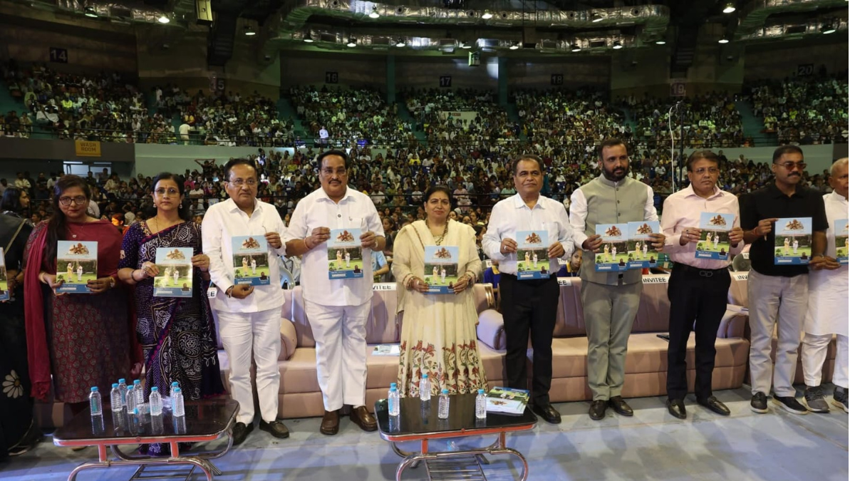 સુરત. કેન્દ્રીય જળ શક્તિ મંત્રી સી.આર. પાટીલના જન્મદિવસ નિમિત્તે રવિવારે સુરતના ઘોડદોડ રોડ સ્થિત ઇન્ડોર સ્ટેડિયમ ખાતે હીરાબાનો ખમકાર ફાઉન્ડેશન દ્વારા વિશાળ સમાજસેવા કાર્યક્રમ યોજાયો હતો. કાર્યક્રમ દરમિયાન 5100 દીકરીઓને શિક્ષણ માટે પ્રોત્સાહનરૂપે 7,500 રૂપિયાના ચેક આપવામાં આવ્યા હતા, જ્યારે 1,25,000 જેટલા વિદ્યાર્થીઓને નોટબુકનું વિતરણ કરવામાં આવ્યું હતું.