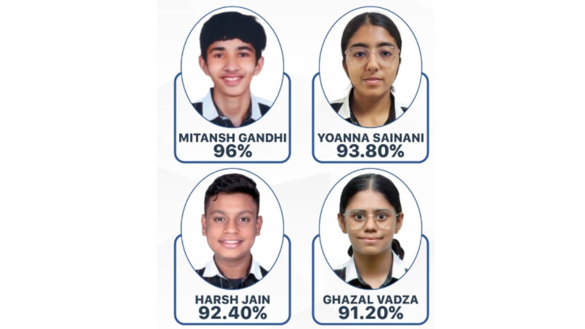 ઉત્તમ પ્રદર્શન કરનાર વિદ્યાર્થીઓમાં મિતાંશ ગાંધીએ 96% ગુણ મેળવી શાળામાં પ્રથમ સ્થાન મેળવ્યું છે. ત્યારબાદ યોઆન્ના સૈનીનીએ 93.80%, હર્ષ જૈને 92.40% અને ગઝલ વડઝાએ 91.20% ગુણ પ્રાપ્ત કર્યા. આ વિદ્યાર્થીઓએ પોતાના શિસ્તબદ્ધ અભ્યાસ, પરિશ્રમ અને સતત પ્રયાસોથી સફળતાની નવી ઊંચાઈઓને સ્પર્શી છે.